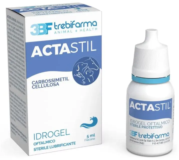 ACTASTIL IDROGEL is a product for ophthalmic use in dogs, cats, non-DPA horses, and pet rabbits. It consists of a sterile, isotonic saline solution with N-acetylcarnosine and carboxymethylcellulose, indicated for protecting, hydrating, and lubricating the ocular surface. Thanks to its mucoadhesive, viscoelastic, and hydrating properties similar to the tear film, it acts by forming a defensive barrier on the ocular surface with lubricating, antioxidant, and free radical-fighting properties, protecting and repairing the ocular tissues (crystalline lens, cornea, and conjunctiva) in the event of ocular discomfort, such as prolonged exposure to sunlight, wind, dust, smog, and oxidative stress due to environmental factors. The specific concentration of N-acetylcarnosine promotes the restoration of normal physiological conditions at the ocular level by counteracting the aggression of cellular lipid peroxidases. Carboxymethylcellulose gives the hydrogel rheological characteristics similar to those of tear fluid, including high adhesiveness and persistence, which allows it to act as a protective shield and lubrication of the ocular surface.