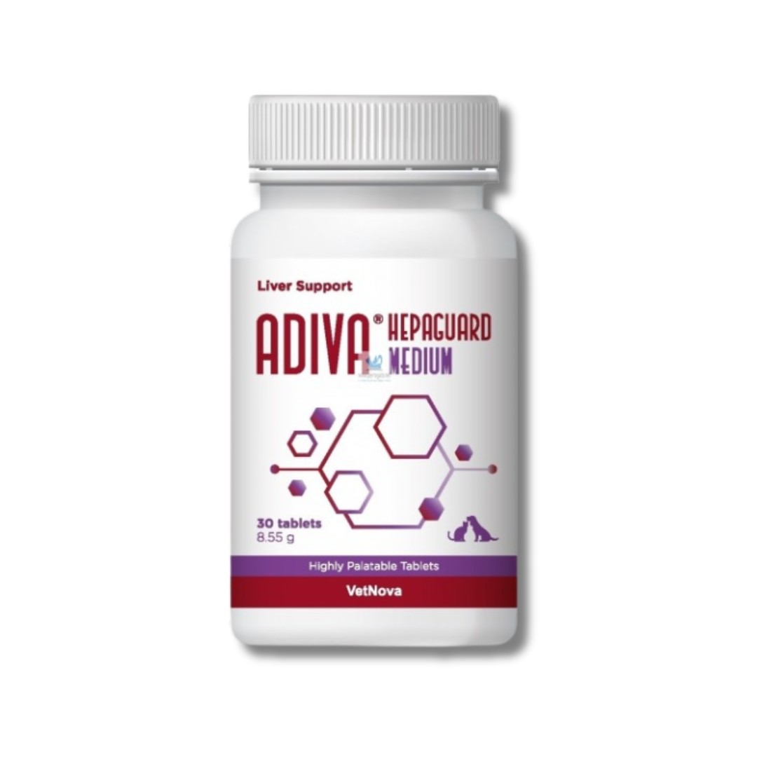 Vetnova adiva hepaguard medium is a complementary feed formulated in highly palatable tablets for dogs and cats to support the maintenance of liver function.