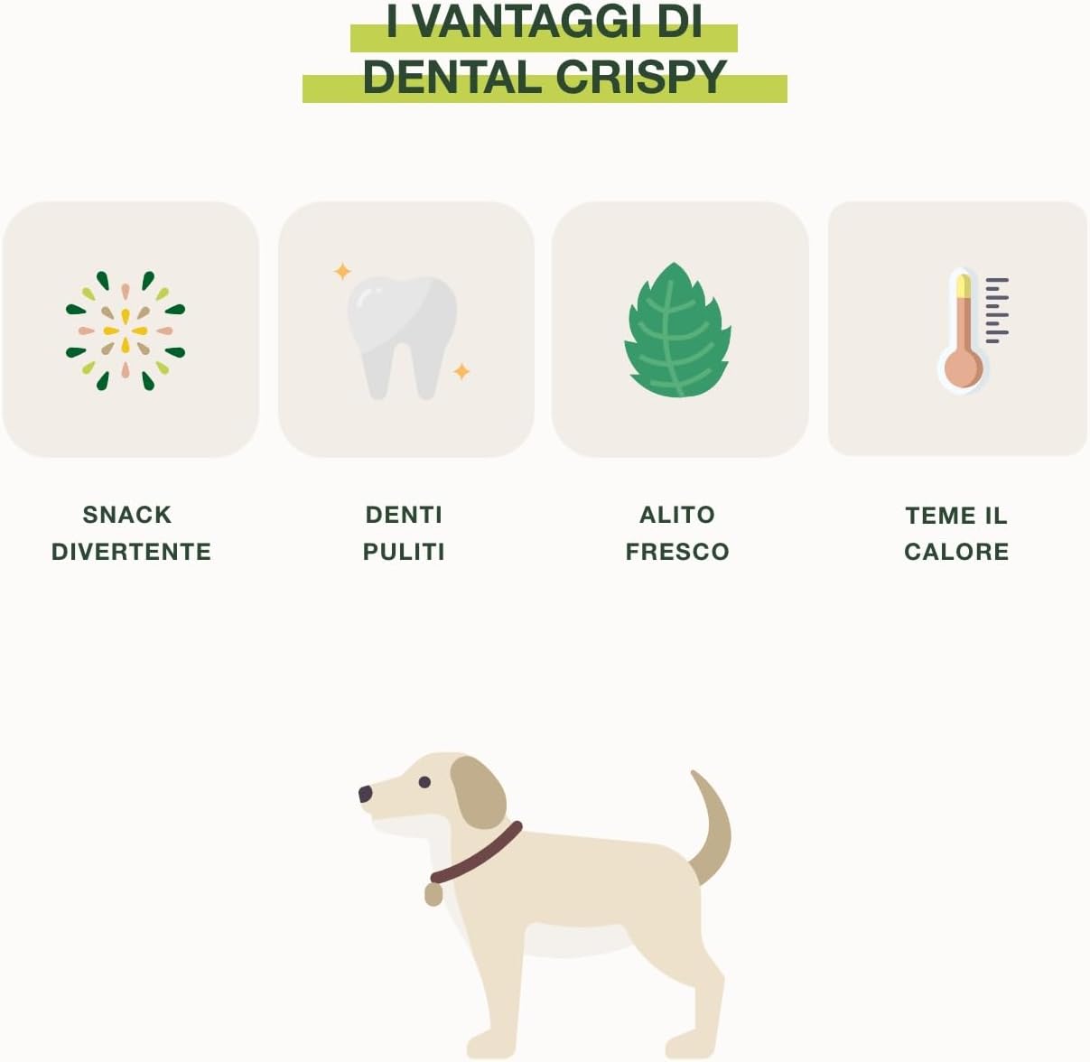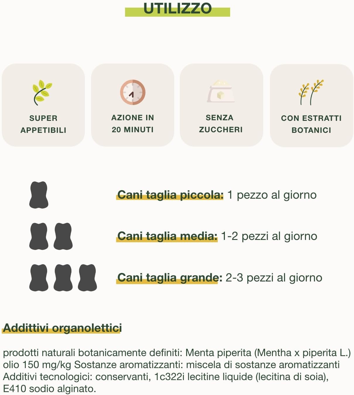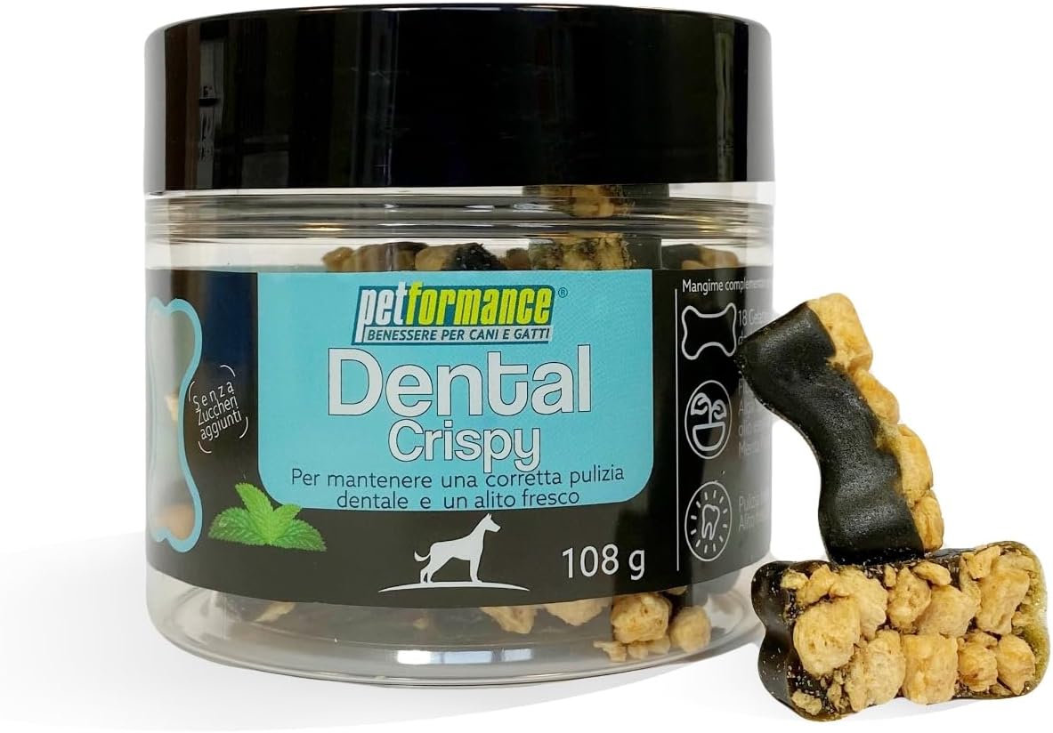 It contains Spirulina Algae, which favorably modulates the composition of the bacterial flora, and Mint essential oil, which helps give the dog fresh breath, supporting a correct balance of the bacterial flora in the oral cavity.
