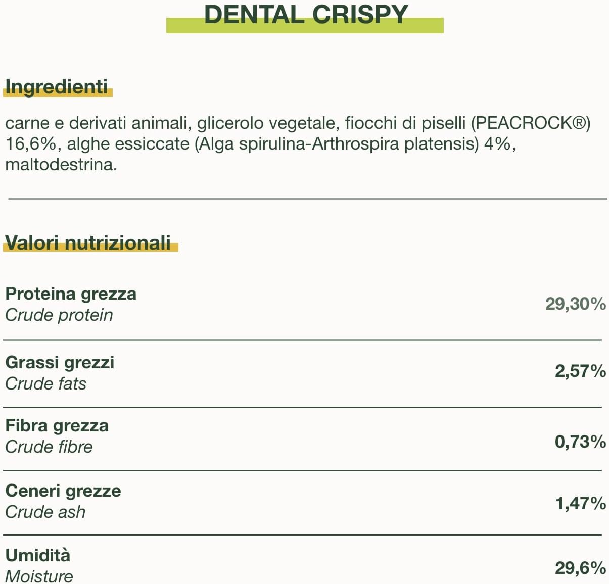 Dental Crispy is a complementary food for dogs in convenient gummy jellies, with an innovative texture, specifically designed to promote normal oral health in dogs.