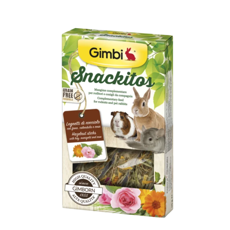 Gimbi Hazelnut Stick Snackitos is a complementary feed for rodents and dwarf rabbits.
