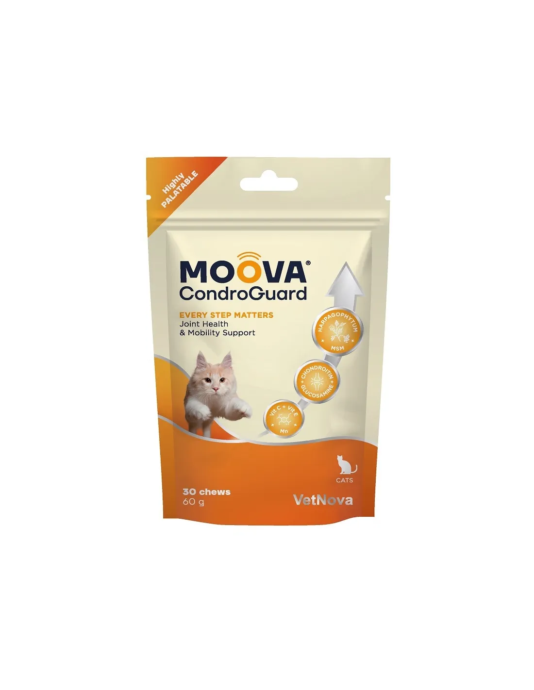 Moova Condroguard Chews Cats is a complementary food with a complete and synergistic formula with triple action: chondroprotective, helps maintain the health and flexibility of your cat; joint and with an antioxidant effect.