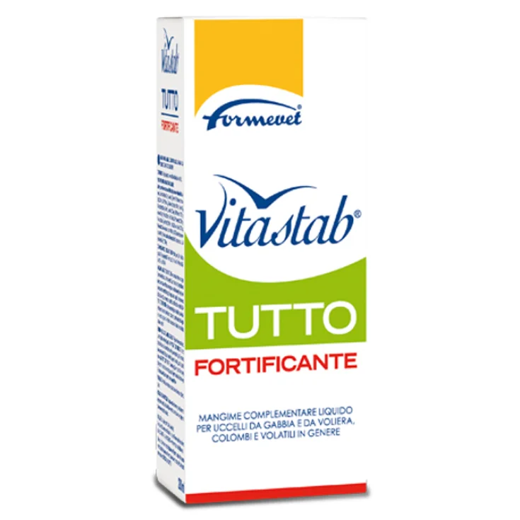 Vitastab Tutto Fortificante is a liquid complementary feed for birds and pigeons, useful for optimizing and strengthening physiological conditions.
