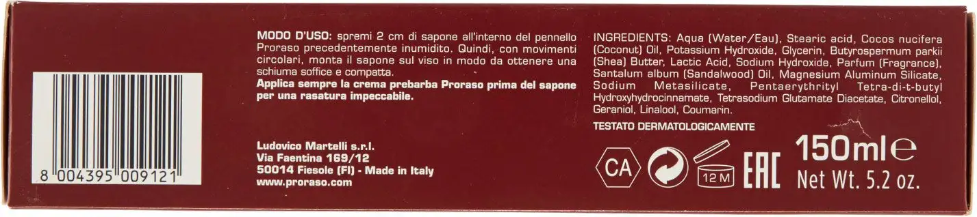 It is produced using the "hot saponification" process and subjected to a maturation period of 3 days. The result is an extremely fine, dense and creamy soap, which with the help of the brush instantly transforms into a soft and compact foam. Perfect for softening even the thickest and toughest beards, it offers protection from razor burn and nourishes the skin. Its formula, ideal for softening even the thickest and toughest beards, is enriched with Sandalwood oil and Shea butter. The blade glides easily and the beard, made softer by the synergistic action of the Emollient Pre-Shave Cream and Emollient Soap, is more manageable. easy to cut.
