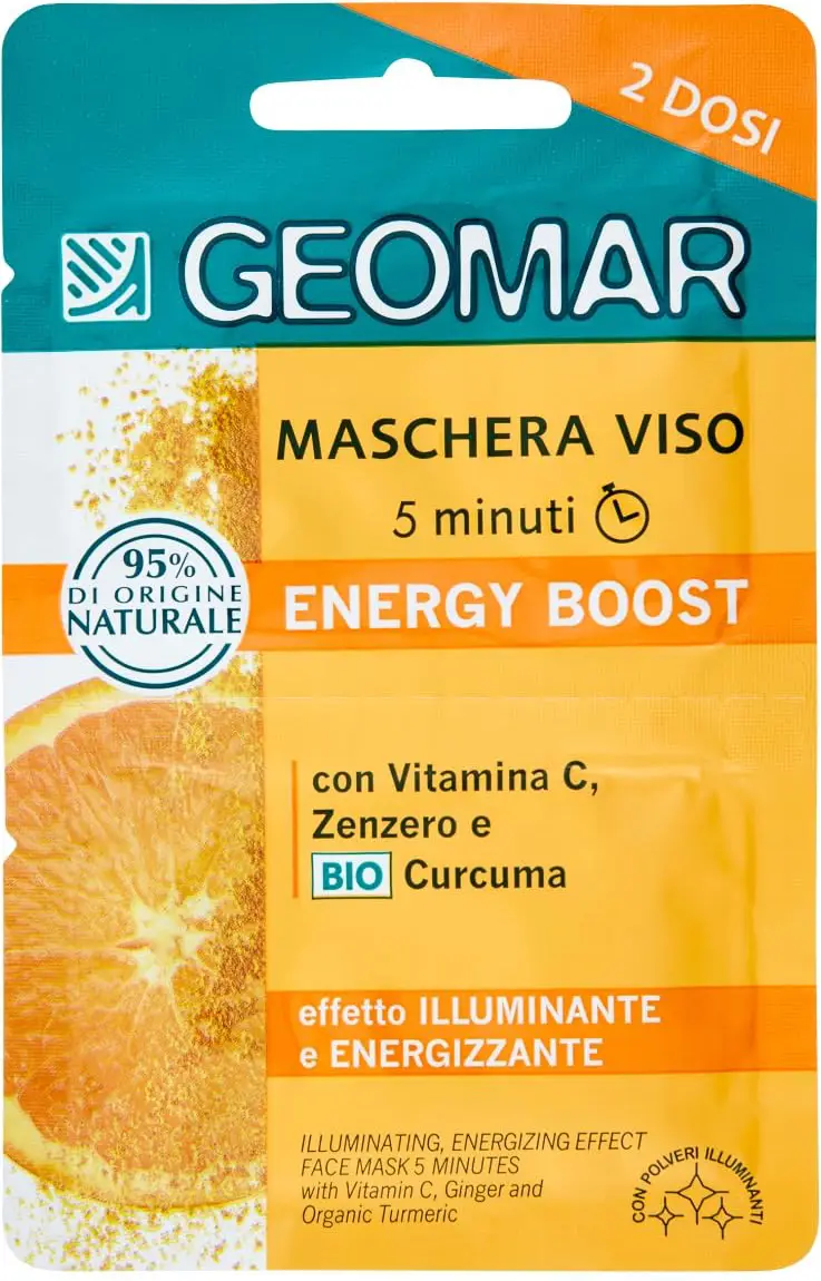 The Energy Boost Face Mask, with Vitamin C, Organic Turmeric and Ginger, is a specific treatment that in just 5 minutes gives the skin a fresh and vital look, hydrating and reviving the natural brightness of the face.