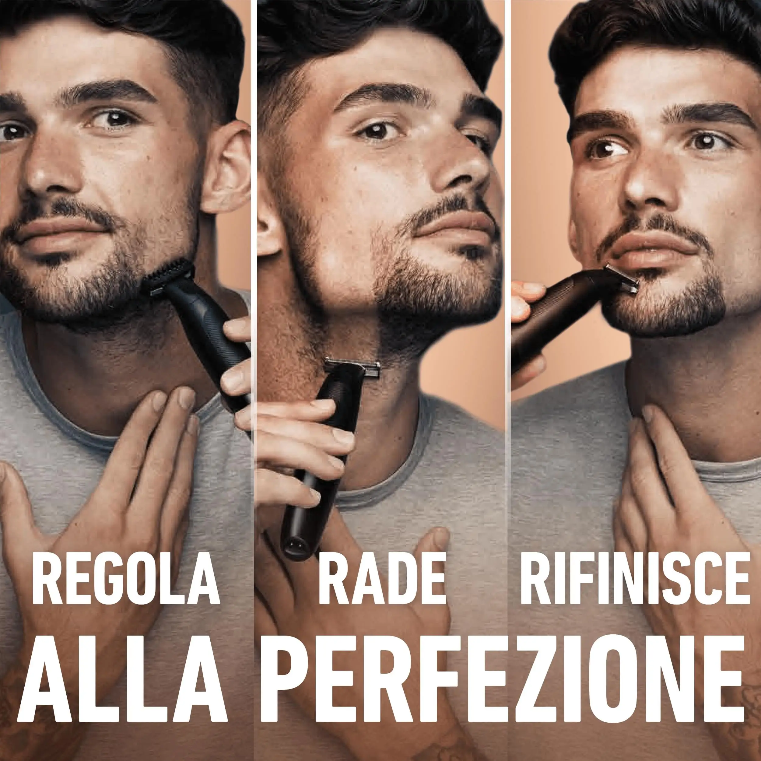 This cordless facial hair trimmer features a 4D blade with 2 side trimmers and 2 center cutting zones. For a simple, fast, and convenient shave.