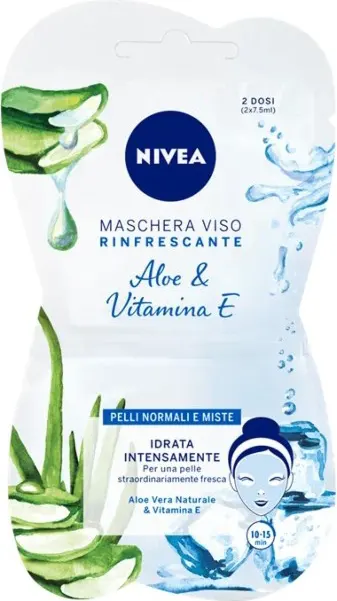 Face mask with Aloe & Vitamin E for intense hydration and fresh skin. The refreshing formula with Hydra IQ provides extra hydration, leaving a feeling of freshness. Enriched with natural Aloe Vera and Vitamin E, it maintains the skin's natural hydration balance.