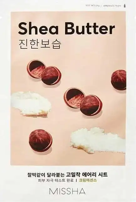 The Missha Airy Fit Shea Butter sheet mask with shea butter has a highly hydrating, brightening and soothing effect.