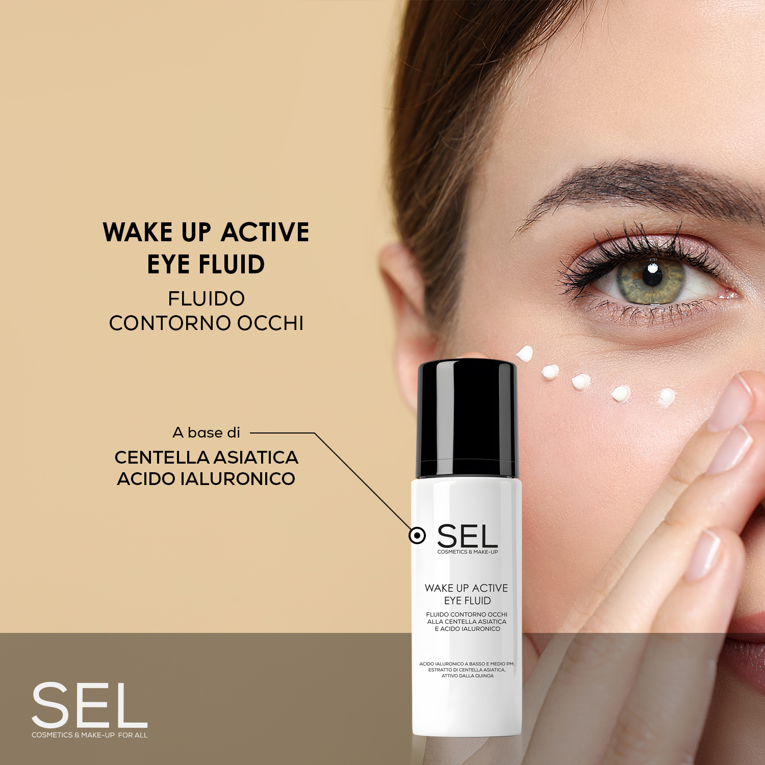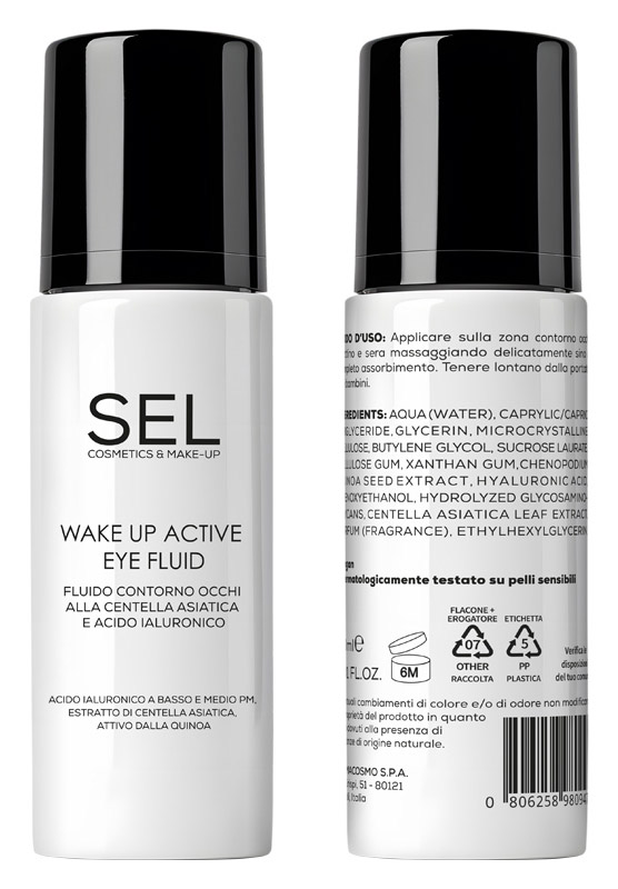 Wake Up Active Eye Fluid by SEL is a treatment for the eye contour, with a fluid and light texture, formulated with active ingredients that provide hydration and elasticity to the eye area and help combat the formation of puffiness, bags and dark circles.