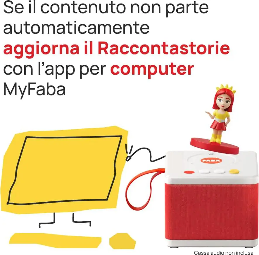 Intuitive and easy to use The app supports you in using Faba with constant updates, stories you can listen to anywhere, and extra content to discover and share. Through the MyFaba app, you can access your account and scan the code under the Sound Character to play the stories even on your smartphone, access extra content, and see all the purchasable stories.
