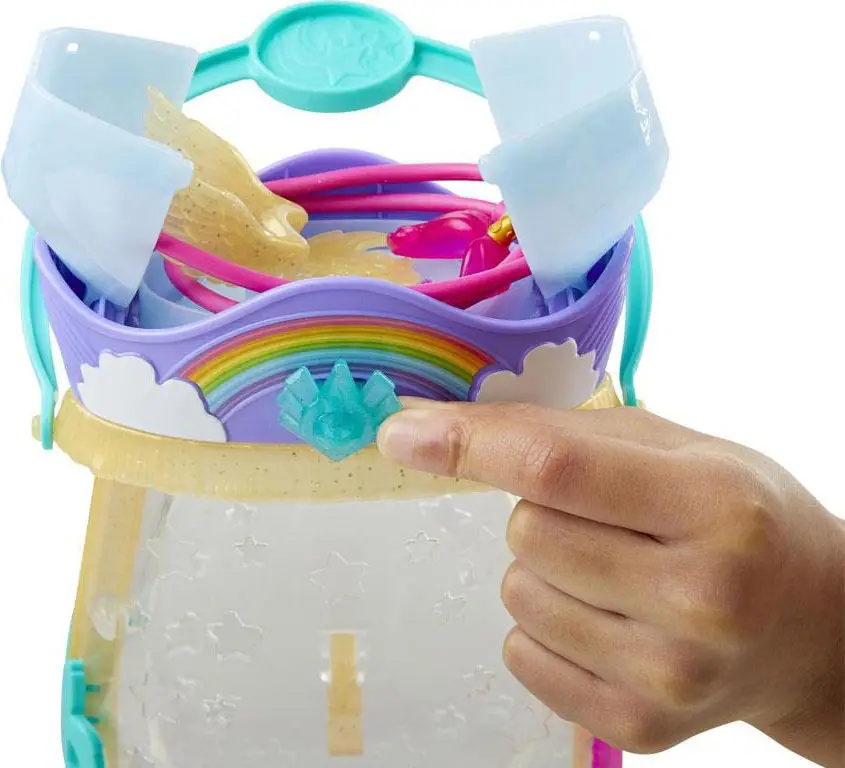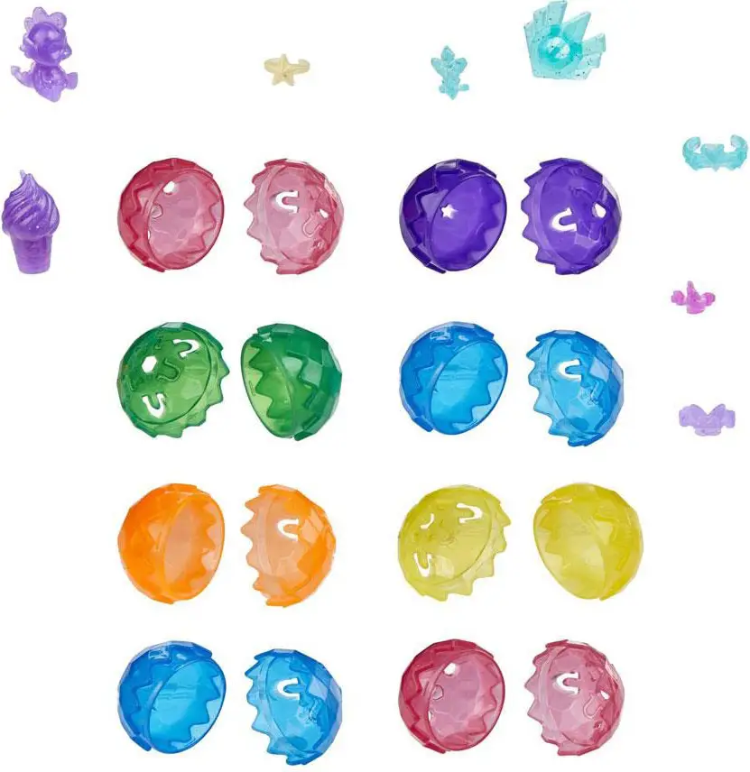 Turn the lantern key to reveal crystal-shaped containers and surprise accessories hidden inside; includes 8 crystal-shaped containers and 15 surprise accessories.