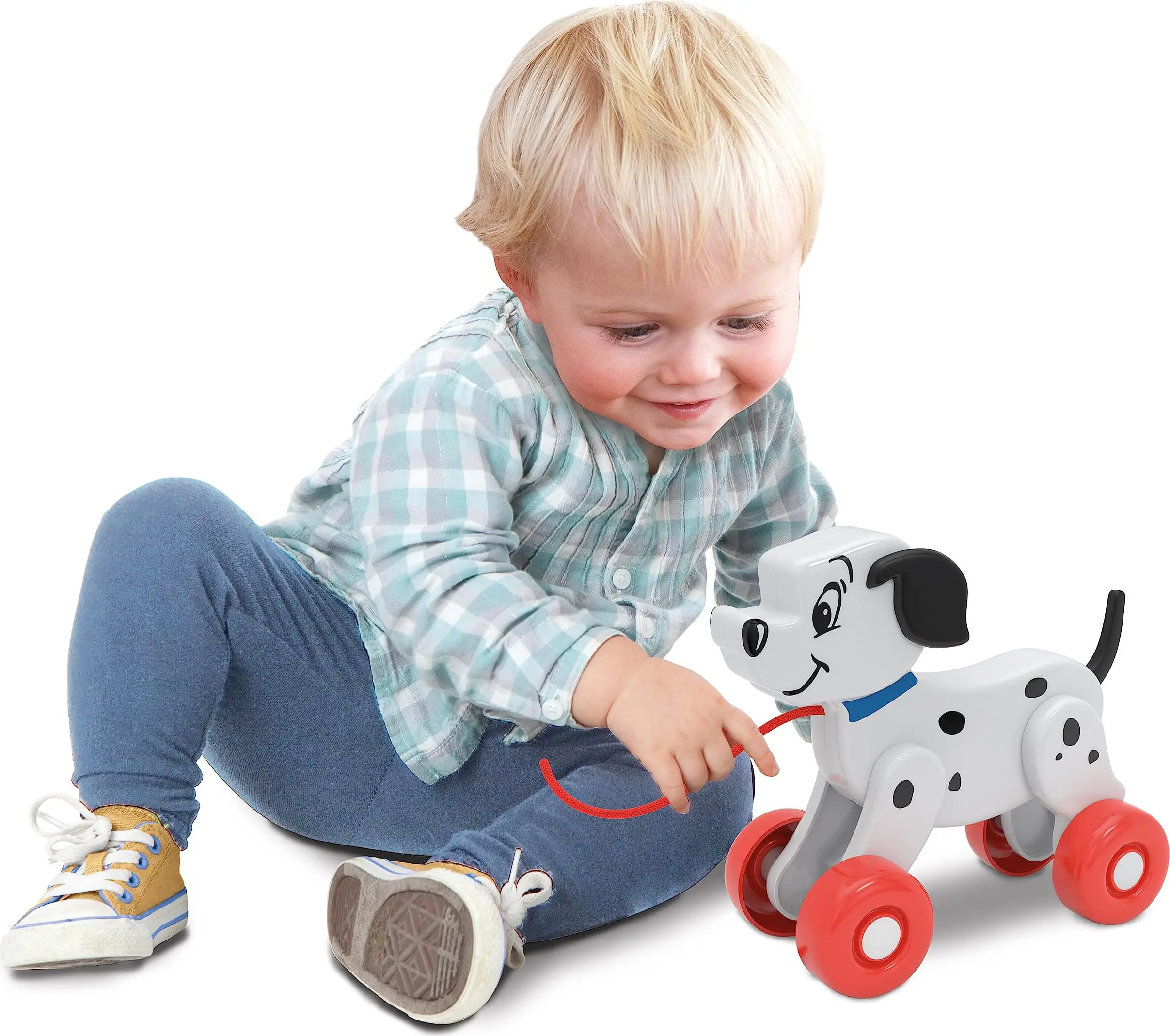 Thanks to the wheels and string, your child can play with Lucky on a thousand adventures. Your child can raise and lower the character's tail, which stimulates fine motor skills. A game designed to encourage your child's movement and spark their imagination.
