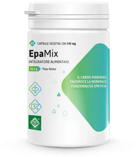 Epamix is a food supplement containing vitamin C, which helps protect cells from oxidative stress, milk thistle, which promotes normal liver function, and green tea, which promotes the drainage of body fluids with L-cysteine, N-acetylcysteine, and beta-carotene.