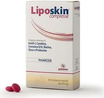 LIPOSKIN tablets are a food supplement containing Acetyl-L-Carnitine, Coenzyme Q10, Zinc and Vitamins (Biotin and Pyridoxine), useful for filling nutritional deficiencies or increased needs for these nutrients. Biotin and Zinc contribute to the maintenance of normal skin and hair. Gluten-free.